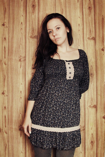 Доброго времени суток. Цветочек, а в особенности мелкий, в моде и с наступлением зимы эта самая мода на него не теряет своей актуальности. Почему? да потому что в любое время года мы должны наблюдать яркие краски и на себе в том числе для поднятия духа и прочего радужного настроения. Мои цветочки хоть неяркие, но неизменно поднимают мне настроение, хотя бы потому что синий, один из моих любимых цветов. Он чудо как идет брюнетка по-моему, и в такой вот приглушенной вариации. Но сам по себе он бы был довольно скучен и сливался бы с моей жгучей брюнетостью. И я решила разбавить его кричневым , в виде таких аксессуаров.