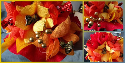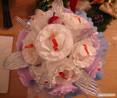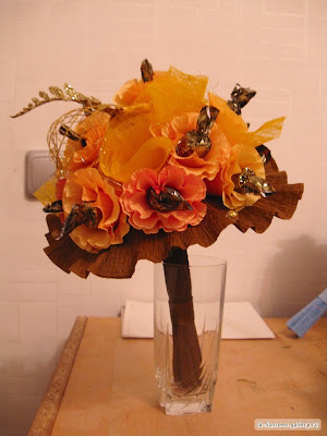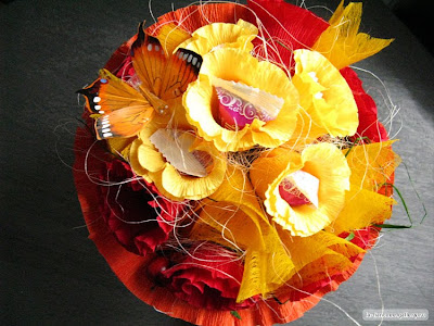 2011-03-25 22:32:00 (читать в оригинале)Честно говоря, мне и самой очень хочется сделать букет, но нужной бумаги я найти не могу, вернее не задавалась такой целью, в магазинах, что есть у дома точно креп-бумаги нет. Я вот только хочу, а подруга заразилась и делает такие потрясающие букеты из конфет. Смотрите сами: