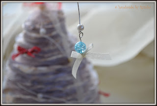 - Возьмите нитку или тонкую проволоку, привяжите к шпажке, снизу. Затем нанизывайте бусинки. У вас получится гирлянда. После того, как вы наденете ее на елку, второй конец привяжите к макушке.