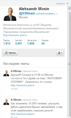 2011-05-31 19:33:00 (читать в оригинале)Сегодня наша рубрика претерпела некоторые изменения. Сегодня весь день я посвятил автомобильной тематике, поэтому мы попытались сегодня загнать несколько ТвитГлумов на автомобильную тематику, однако ничего не нашли, кроме как ТвитПрофессора Политехнического Института, который предлагает экономить топливо.
