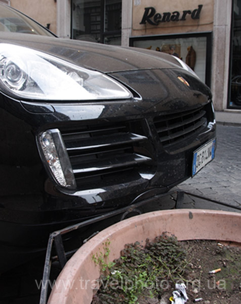 В Риме есть подпольная секретная школа паркования. Иначе как объяснить умение запарковать Кайен на расстоянии меньше 5 миллиметров от железяки, являющейся частью мусорника клумбы.
