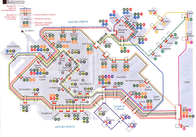 Внимание, обязательно сверьтесь со схемой на станции Вапоретто или спросите итальянцев, ведь эта схема может со временем устареть.