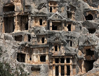 Из интересного еще можно увидеть чертовски древний городок Симена, основный еще в пятом веке до нашей эры. Город ликийский, но традиция захоронения почему-то другая. Если в Мире гробницы высекались в скале, то здесь людей хоронили в саркофагах. По всему острову и кое-где в море разбросаны "домики" в виде перевернутых лодок. Это сделано для того, чтобы усопший ликиец смог на крышке саркофага поплыть по реке вечности.