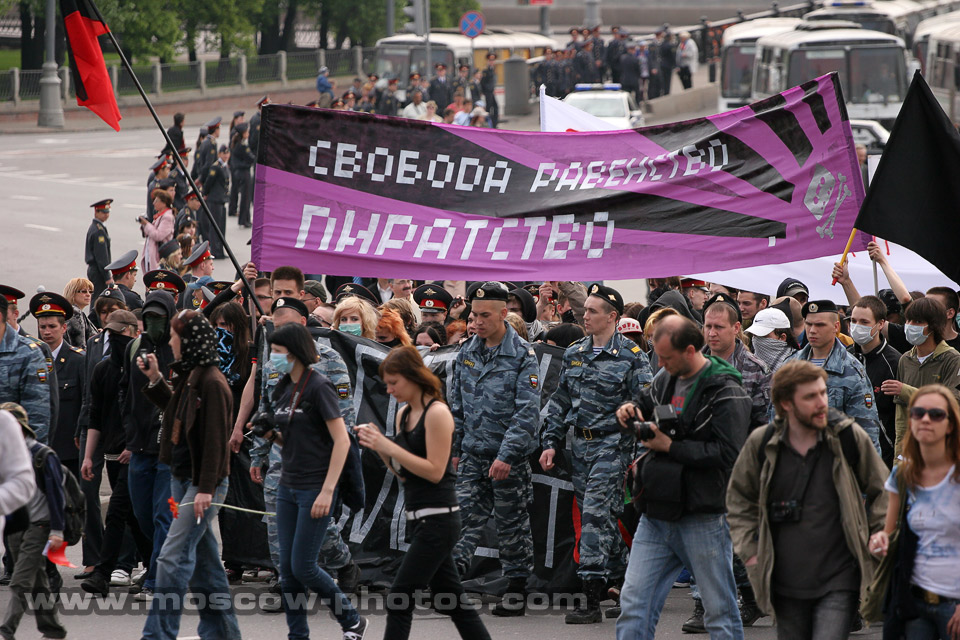 Анархосиндикалисты вроде, да? Этих ребят трудно назвать «несогласными», соглашусь, но вроде с ними что-то пытался устроить Лев Пономарев, а их акции традиционно освещают медиа «несогласных».