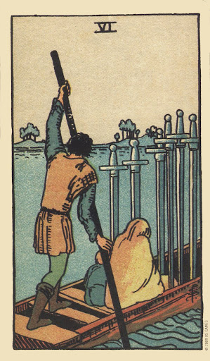 Можно сказать, что шестерка мечей — это «разумный первичный импульс к изменениям». Или «начало долгого пути» (каждый путь начинается с решения).