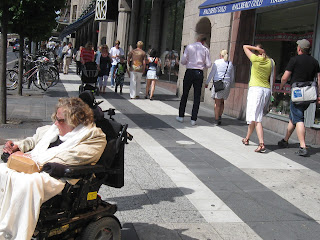 В Финляндии (Лахти) мы наблюдали такой случай: молодой человек с переломанной шеей, рукой и ногой (результат ДТП), въехал на коляске в кафе с миловидной соц. работником (видимо, для адаптации). Кстати, во всех туалетах предусмотрены кабины для инвалидов, почти во всех магазинах – пандусы. Что самое интересное: там инвалиды не разучились смеяться.