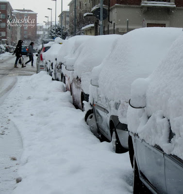 Турин. Начало февраля, итальянцы не привыкшие к снегопадам удивлены нынешнему выпавшему снегу.