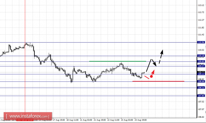 По паре Евро/Доллар продолжение развития кверху возможно после пробоя 1.1836, уровень 1.1732 является ключевой поддержкой. По паре Фунт/Доллар продолжаем следить за нисходящей структурой от 21 августа. По паре Доллар/Франк развитие восходящей структуры в масштабе Н1 возможно после пробоя 0.9697. По паре Доллар/Иена продолжения движения книзу ожидаем после пробоя 109.10. По паре Евро/Иена мы пока склоняемся к последующем развитию нисходящей структуры от 16 августа, учитывая структуру большего масштаба. По паре Фунт/Иена продолжения развития нисходящей структуры от 15 августа ожидаем после пробоя 139.30.