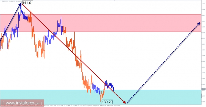 Краткосрочное восходящее движение возможно в коридоре 139.92 – 140.22, пробой последнего значения приведет к углубленной коррекции, здесь цель 140.65, этот уровень является ключевой поддержкой для нисходящей структуры от 15 августа, до него мы ожидаем оформления выраженных начальных условий для восходящего цикла.