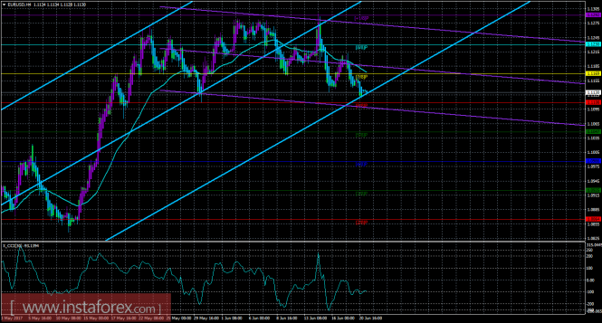 Хайкен Аши – индикатор, окрашивающий бары в голубой или фиолетовый цвета.Материал предоставлен компанией InstaForex - www.instaforex.comТехническая картина валютной пары EURUSD по системе «Каналы регрессии» за 21 июня 2017 года