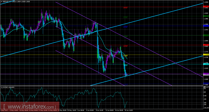Техническая картина валютной пары GBPUSD по системе «Каналы регрессии» за 21 июня 2017 года