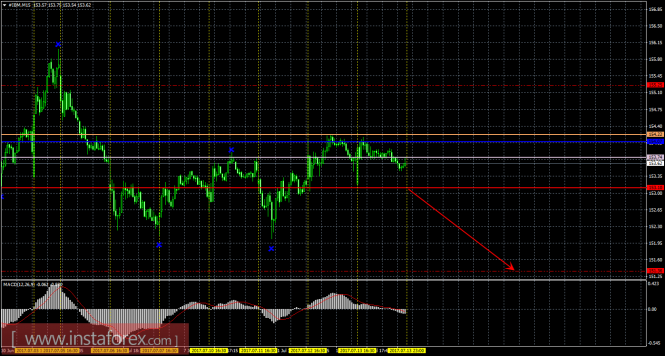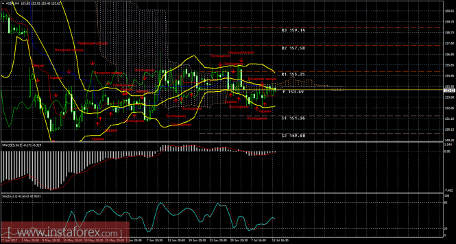 На младшем графике рекомендуется рассматривать ордера на продажу с целью 151,36 при закреплении цены ниже 153,10 (Тенкан-сен) и уровнем S/L выше 153,10. MACD должен быть направлен вниз.