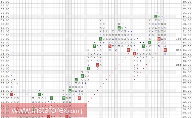 Первоначальной целью для продавцов выступает отметка 42, при подходе к которой рекомендуется закрыть 1/2 от общего объёма коротких позиций.