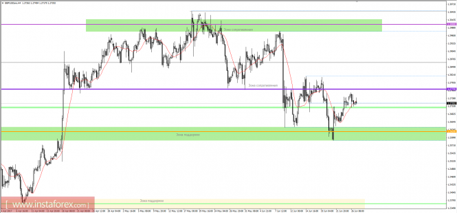 Волновая разметка предполагает построение восходящего набора волн. Волна Е, в B предположительно завершила свое построение. Таким образом, сейчас ожидается повышение котировок в рамках волны с, в а, в С с целями, расположенными около 98 и 99 фигур. Волна Е, в B может усложнить свою внутреннюю волновую структуру, но на данный момент выглядит полностью укомплектованно.Материал предоставлен компанией InstaForex - www.instaforex.comВолновой анализ валютной пары GBP/USD за 27 июня 2017 года