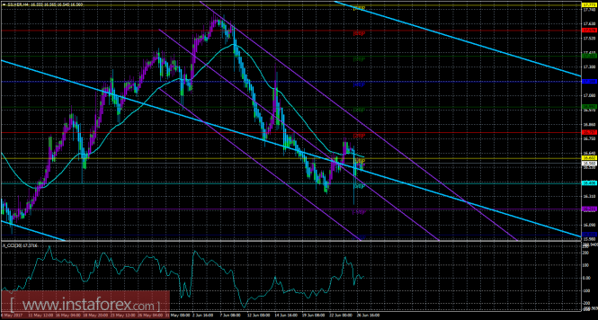 Техническая картина инструмента SILVER по системе «Каналы регрессии» за 27 июня 2017 года