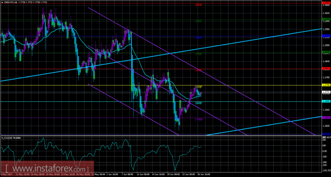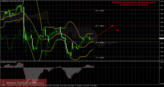 Красная линия и гистограмма с белыми барами в окне индикаторов.Материал предоставлен компанией InstaForex - www.instaforex.comТехнический анализ и торговые рекомендации по валютной паре GBP/USD на 27 июня 2017 года