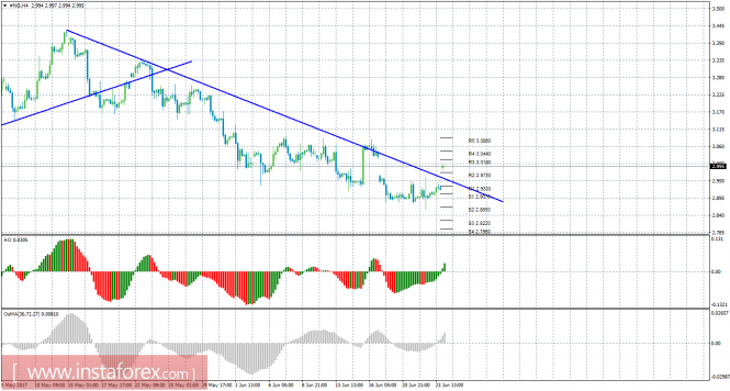 Красная линия и гистограмма с белыми барами в окне индикаторов.Материал предоставлен компанией InstaForex - www.instaforex.comТехнический анализ природного газа за 26 июня 2017 года
