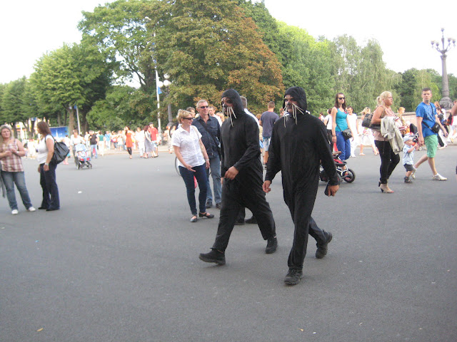 В восвресенье 19 августа днем и вечером на набережной Даугавы было устроено народное гулянье - концерт, море палаток рестораторов, предлагавших разную снедь и напитки: традиционные пиво и сидр, колбаски, "национальное латышское" блюдо - шашлык и т.д. Можно было посидеть за столиками или взять с собой. Вечером очень поразило шоу с гелиошарами и аккробатами! Даже забыл, что снимать на фото это действо собирался. Все это на закате (устроители никак не могли дождаться благоприятного ветра) и под волшебную музыку! Все остались под впечатлением! Классным завершением был салют! Действительно красивый! В конце народ аж зааплодировал.