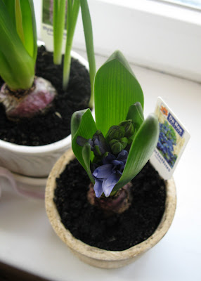 Пока за окном лютые морозы - у меня на окне зацвели предвестники весны, гиацинты и крокусы. Вот такие они были 14 января, только начали пробиваться