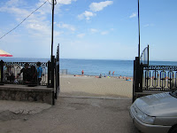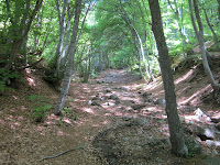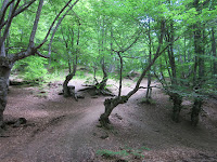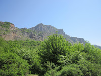 Ну а виды там вообще шикарные. То заходишь в лесное ущелье и идешь в тени, там обычно и родник течет, можно попить и ополоснуться. То идешь по солнцу какое-то время: с одной стороны красивейшие горы с фалособразными скалами, а с другой простор, и где-то в дали, внизу, виднеются деревни и города, а за ними угадывается море. Иногда встречались пасущиеся, или перегоняемые с одной базы на другую лошади. Иногда на них "скакали" участники конных прогулок.