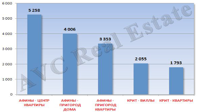 Средняя стоимость м кв в Греции, евро