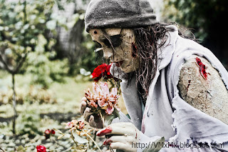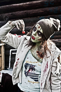 2012-07-31 14:16:00 (читать в оригинале)Изначально планировал сделать страшных классических зомби, но решил немного поэкспериментировать... Раны делал по принципу описанному мной ранее, а кожу на девушке покрасил гуашью, а потом гуашь закончилась и парня красил обычной водоэмульсионной краской ))) Никакого раздражения на коже не наблюдалось, смылось все очень легко. И так, меньше слов! Вот что получилось: