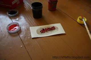 Когда основа готова, берем краски и начинаем рисовать рану. Нижний слой я закрасил черным цветом, потом красным и местами их перемешал, думаю не обязательно делать все аккуратно. Потом все равно можно подправить, если что :)