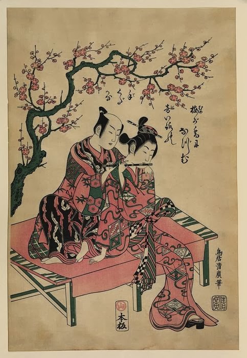 Кроме того, в 1750 -1760 годах художник выпустил роскошные полихромные гравюры бэнидзури-э в зелено-розовых тонах.