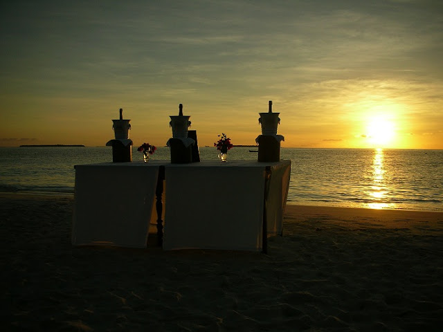 розово и пушисто на горизонте. Раньше на острове были проблемы с пляжем - не было песка перед береговыми бунгало, а