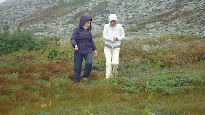 Часть участников осталась внизу. Наш предусмотрительный проводник Василий взял с собой тент, который натянули и укрылись от ветра. Ребята пели мантры, делали пранаямы и ели чернику. А большая часть участников отправилась на вершину.