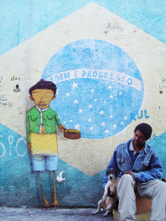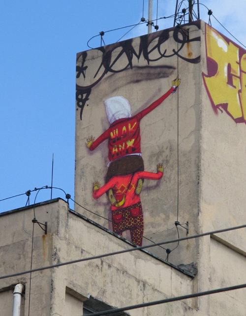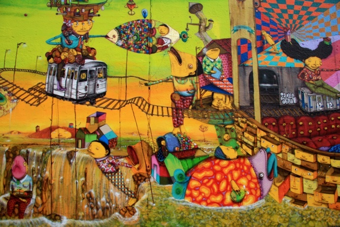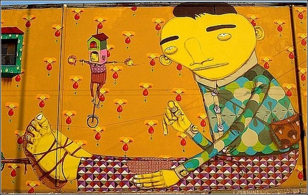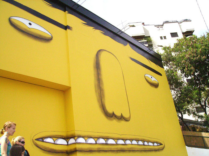 Браться близнецы Густаво (Gustavo) и Отавио (Otávio) Падольфо (Pandolfo) Osgemeos , которые работают под псевдонимом Osgemeos являются одними из самых ярких и узнаваемых , бразильских уличных художников. Эти два ума переполнены всеми цветами и вкусами воображения. Источником вдохновения для многих их рисунков и магических басен является то , каким образом Густаво и Отавио задумываются о своей внутренней реальности и фантазии , которые их окружают. Каждая маленькая деталь которая проходит через их воображение , отображается в их работах. Впервые браться столкнулись с граффити в далёком 1986 году , когда они жили в центральном районе Сан-Паулу, где и провели своё детсвто и юность . При появлении в Бразилии первых течений хип-хопа , отражение этой культуры сражу же появлялось на стенах микрорайона. Во вселенной их персонажей в основном царит жёлтый и красный цвет , которые в итоге стали их визитными карточками , делая их стиль уникальным и узнаваемым.