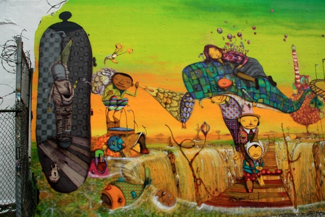 Стрит-арт с Бразилии от дуета Osgemeos ,что впереводе означает "Близнецы".