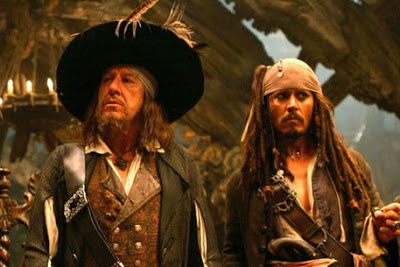 Эти два пиратских барона (Джонни Депп в роли Воробья и Джеффри Раш в роли Барбоссы) ни как не могут поделить между собой самое быстроходное судно «Черная жемчужина», но похоже все бескрайние морские просторы. Джек Воробей, всегда высмеивающий Барбоссу, в душе уважает его талант рулевого, а тот, в свою очередь, восхищается находчивостью ушлого товарища и даже называет в его честь своего верного спутника - обезьянку. Они легко могут стать союзниками и даже товарищами, но лишь до тех пор пока им это на руку.