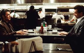 Один ловит ( Аль Пачино в роли лейтенанта Ханны) другой убегает (Роберт ДеНиро в роли Нила). Один совершает преступление, другой его расследует. Если бы не было одного, то и о другом не возникло бы и речи. Вместе МакКоли и Ханна создают поистине слаженный дуэт. Они сошлись, как лед и пламя, и на протяжении фильма, выясняя кто круче, становятся настоящими друзьями. Если не по жизни, то по смерти – точно.
