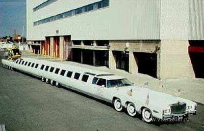 Это самый длинный автомобиль-лимузин длинна которого 30 метров принадлежит Джею Орбергу.Также это авто отличаеться наличием 26 колёс,солярием,джакузи с подогревом и даже бассейном.Авто орендуют для фестивалей.