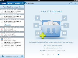 Поначалу, после установки приложения нам сразу предлагают ознакомится в видеоматериалом по приложению в котором счастливые пользователи делают все что хотят очень быстро и удобно. Однако для своих затей они используют не приложение, а в основном веб-интерфейс. Из этого видео можно узнать что сервис Box предназначен не просто как хранилище файлов и папок, но для удобной совместной работы над ними с другими пользователями. Возможно именно сайт сервиса в интернете позволяет сделать все очень быстро и удобно, но про приложение этого сказать не получилось, пользоваться же сайтом на iPad оказалось возможным только в мобильной версии, так как полная версия использует Flash, а мобильная версия имеет только одну функцию - "Share" для выбранного файла.
