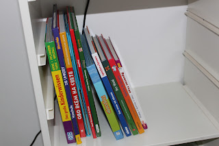 сегдня меня поглатило (на 15 минут) следующее занятие: я разбирала детские книги, перебрала, выкинула лишнее и рассортировала по темам.