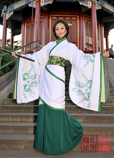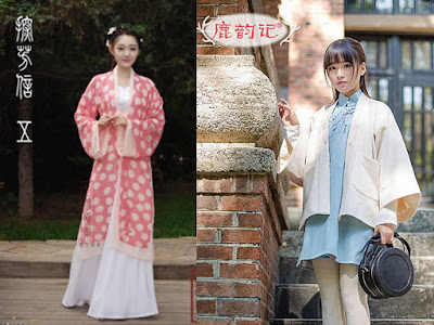 就是從頭到腳都有一套。然後細節處如衣袍,再分交領、對襟、圓領等類別。每個朝代的漢服形制不同,根據連續劇的取材,比較多是用漢唐明三種風格:
