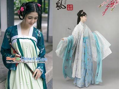 曲裾: 分雙繞曲、三繞曲,三繞曲多為禮服。袖型多胡袖、琵琶袖、廣袖。