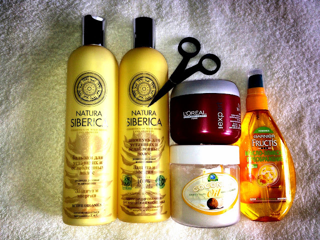 это 1)кокосовая масло +органовая масло (от Garnier Fructis).Это все вместе перемешиваю та теплом бане,и наношу на кончики волос.держу минимум 4-6 часов.потом смываю.