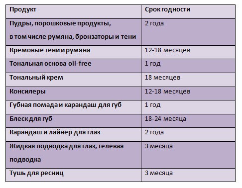 2. Каждая из нас естественно знает, что просроченная косметика — это не только вред для здоровья, но и ужасный макияж и отсутствие необходимого эффекта. Так что пересмотрите свои запасы и поверите, на пару флаконов станет меньше, а поможет вам в этом небольшая памятка.