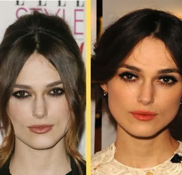 Слева – странный макияж глаз, зрительно уменьшающий глаза, безжизненные губы из-за невыразительного цвета… не самый идеальный вариант макияжа… и это мягко сказано.