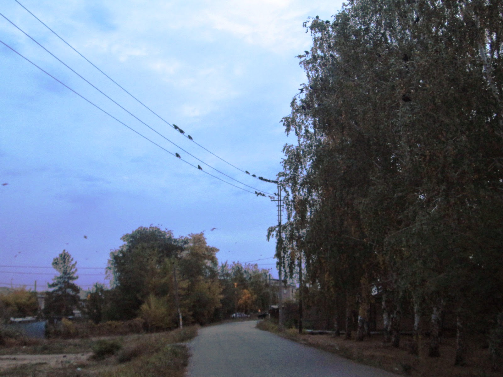 Уже несколько дней подряд по утрам мы наблюдали такую картину: все верхушки деревьев, провода и крыши были облеплены птицами. Они перелетали с места на место, галдели, как бы прощаясь до весны с насиженными местами.