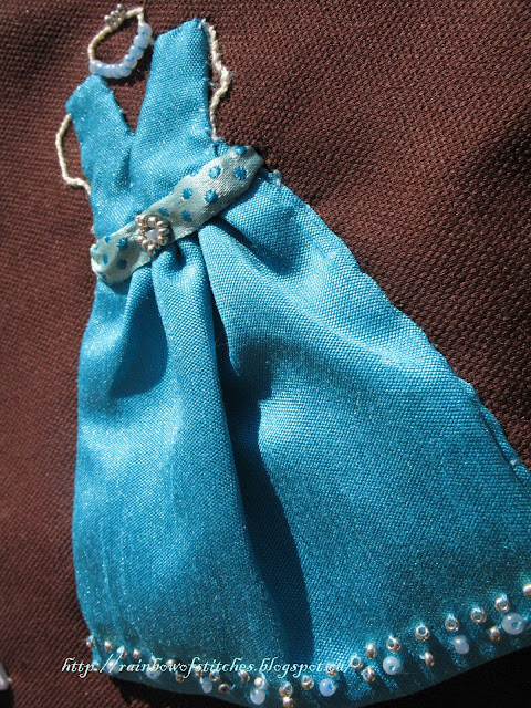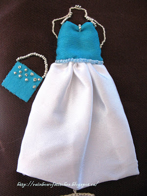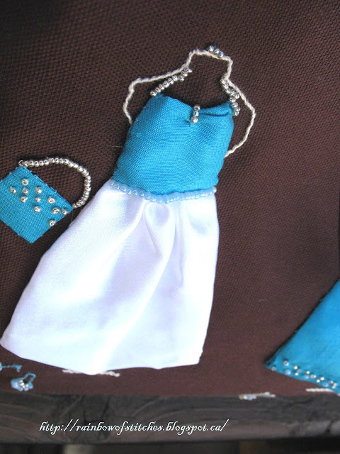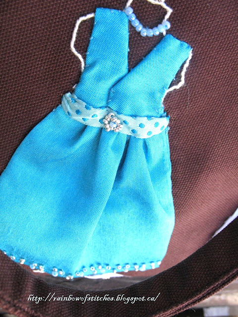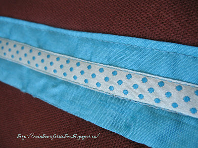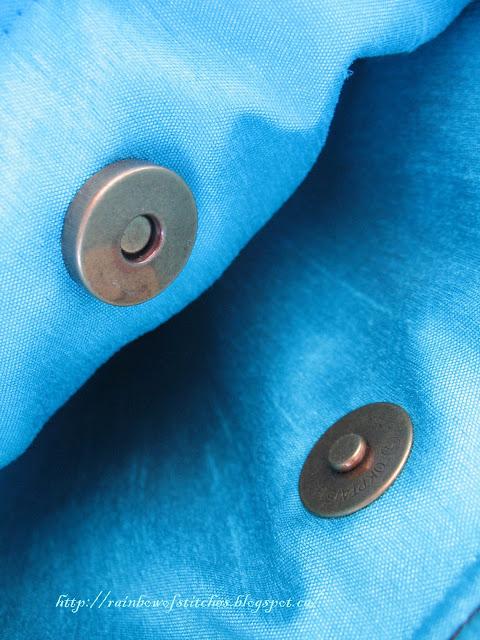 Supplies: fusible interfacing, lightweight wadding, ribbon(polka dots),beads,2 magnetic snap fasteners, matching machine sewing threads