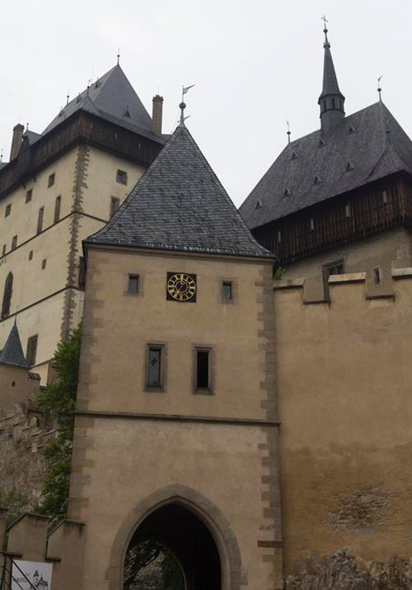 После посещения изящного белоснежного замка мы решили посмотреть на его противоположность - замок Карлштейн, отличающийся величественностью своих крепостных сооружений.