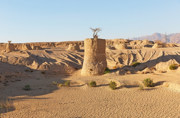 Впечатление создавалось такое, что кто-то специально сотворил песчаные столбы, а потом высадил на них акации. Но история такова. Министерство по охране окружающей среды Израиля дало разрешение строительной компании добывать здесь стройматериал, но обязательно не трогать деревья. Бульдозеры действительно не тронули акаций... Но деревья с нарушенным питанием корней засохли и превратились в безрадостное зрелище. Вот такое здесь совсем не "Чудо природы", а уродство творения рук человека под воздействием формализма. Зимой, во время редких дождей, бассейн каменоломни наполняется водой, которая, конечно же, к началу весны высыхает и оставляет за собой коррозию почвы. Земля, покрытая этими глубокими "морщинами", как бы взывает о дожде и прохладе. Трещины настолько глубоки и широки, что было страшно наступить на край и провалиться в глубь.