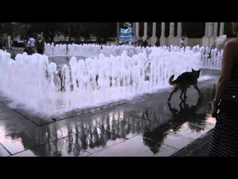 Поставив пост на тему кошачьих, не могу оставить в стороне любителей собак. Возле одного монумента (я о нем уже писала в первом посте) есть интересный фонтан. Вода бьет по периметру, время от времени прекращаясь и давай проход внутрь фонтана. Ну а там уж как повезет. В жаркий день там с удовольствием бегают дети, а мы наслаждались игрой двух собак.