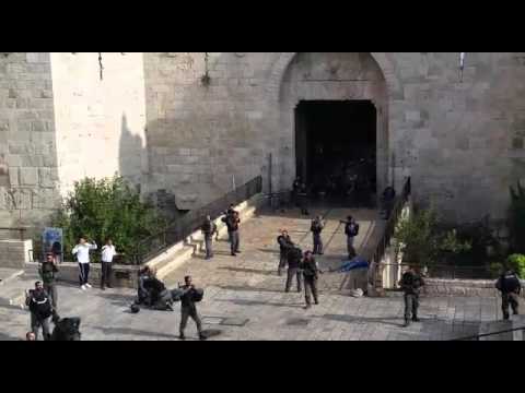 תיעוד של המחבל רץ לעבר השוטרים בשער שכם, ונורה למוות pic.twitter.com/isHdgnL8VF