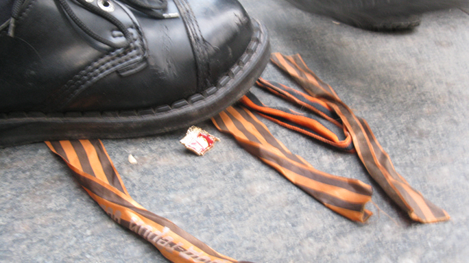 Працівник МВС роз’їжджає Києвом з георгіївською стрічкою (відео)