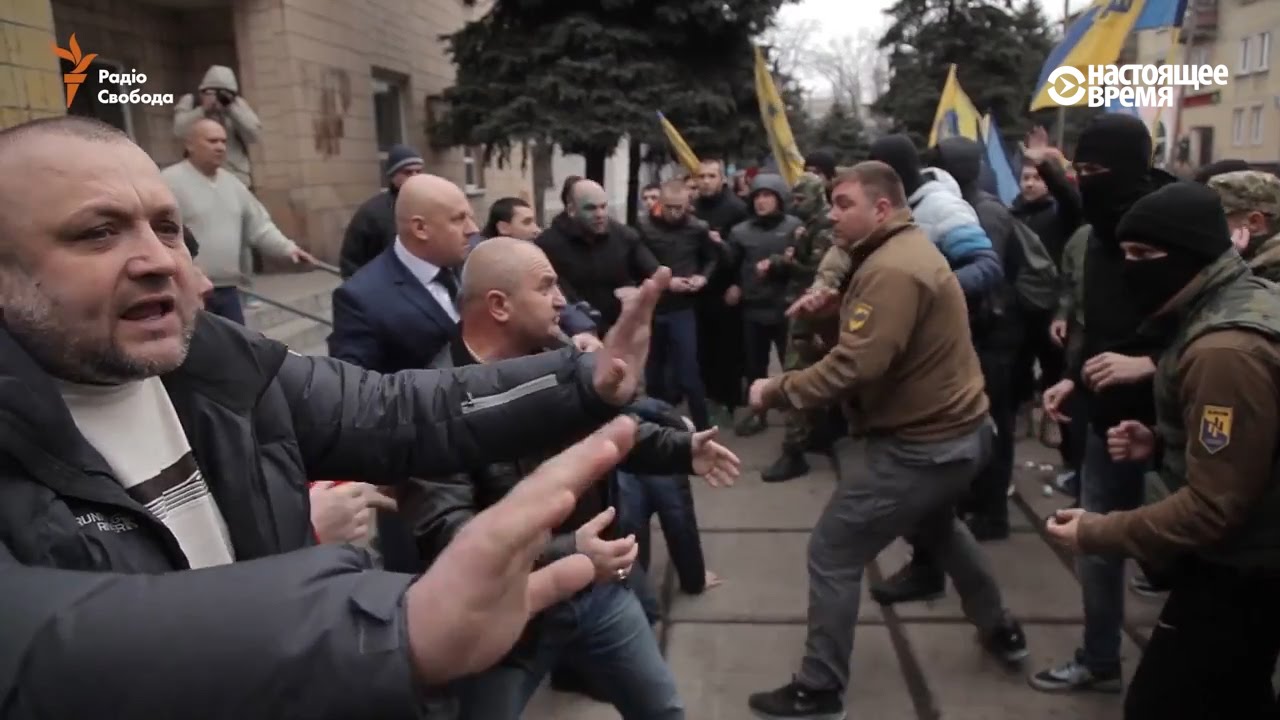 Видео яростной драки мэра и активистов "Азова" на Донбассе